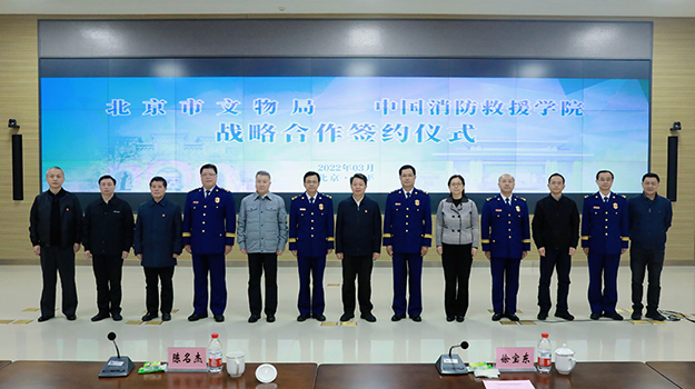 3月30日上午,中国消防救援学院与北京市文物局战略合作签约仪式在学院基础实验楼5层作战训练实验中心举行。北京市文物局党组班子成员、机关相关处室领导,学院党委常委、相关部系(处室)负责同志出席。徐宝东书记代表学院党委致辞,闫胜利院长代表学院签约,仪式由齐方忠副院长主持。