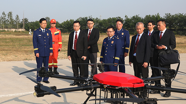在学院西峰山训练基地,梁毓森局长一行观摩了无人机装备静态展示,观看了学院无人机侦测分队灾情侦察、应急测绘、定点抛投物资、灭火弹投掷灭火等动态科目演示。