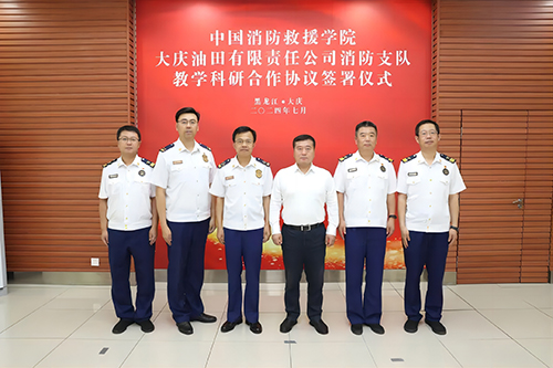 大庆油田消防支队党委书记、政治委员杨永华指出,大庆油田消防支队是1960年伴随着大庆油田的开发建设而组建,并不断发展壮大的一支企业专职消防队伍。建队以来全面加强三支人才队伍建设,2023年9月,在第三届全国危险化学品安全生产应急救援技术竞赛中表现优异,三人被授予“全国五一劳动奖章”。2024年大庆油田队被中华全国总工会授予“全国工人先锋号”荣誉称号。希望双方深入落实习近平总书记训词重要精神,共同打造应急救援校企合作、共建共享、合作共赢的新范式,为国家应急救援管理体系现代化建设做出新的更大贡献。