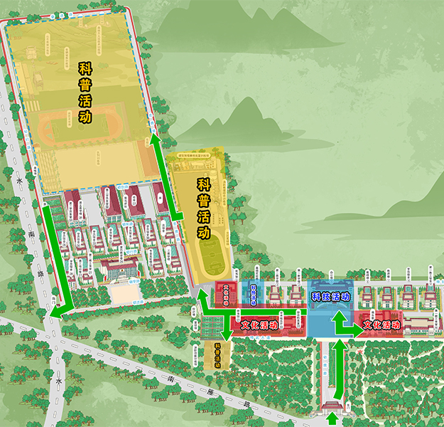 3.自驾:导航“中国消防救援学院-东门或南门”。到达后,请听从志愿者引导停车。(大型车辆从学院东门进入)