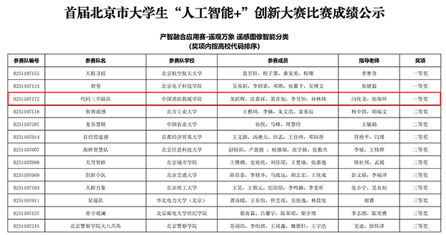 首届北京市大学生“人工智能+”创新大赛秉承“数据驱动、深度融合、智能引领”的办赛宗旨,以“创享青春、智启未来”为主题。大赛自启动以来,吸引了首都高校广泛关注与积极参与,来自北京55所高校的222支优秀本科生队伍、921名选手成功挺进市级决赛,全面展示从基础算法、工程实现到跨界创新的综合能力。为备战此次赛事,学院通过多轮严格遴选,择优推选4组优秀团队参加,指导老师围绕项目方案设计及答辩表达等环节开展系统指导,夯实学生实战基础。
