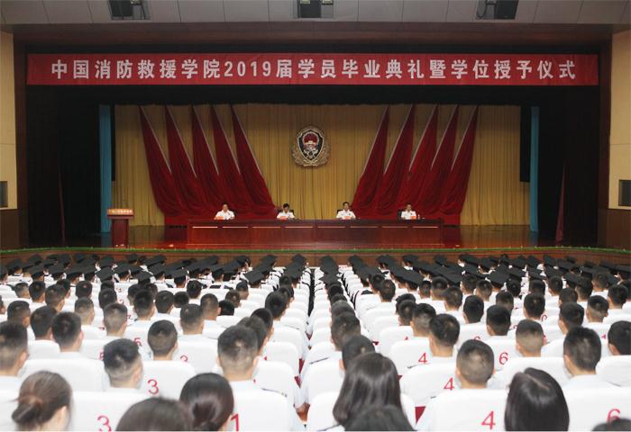 中国消防救援学院2019届学员毕业典礼暨学士学位授予仪式在俱乐部隆重举行,所有毕业生同上大学“最后一课”。学院闫胜利院长、徐宝东政委、训练部齐方忠部长、院务部赵大鹏部长出席会议,全院师生参加典礼。毕业典礼由徐宝东政委主持。